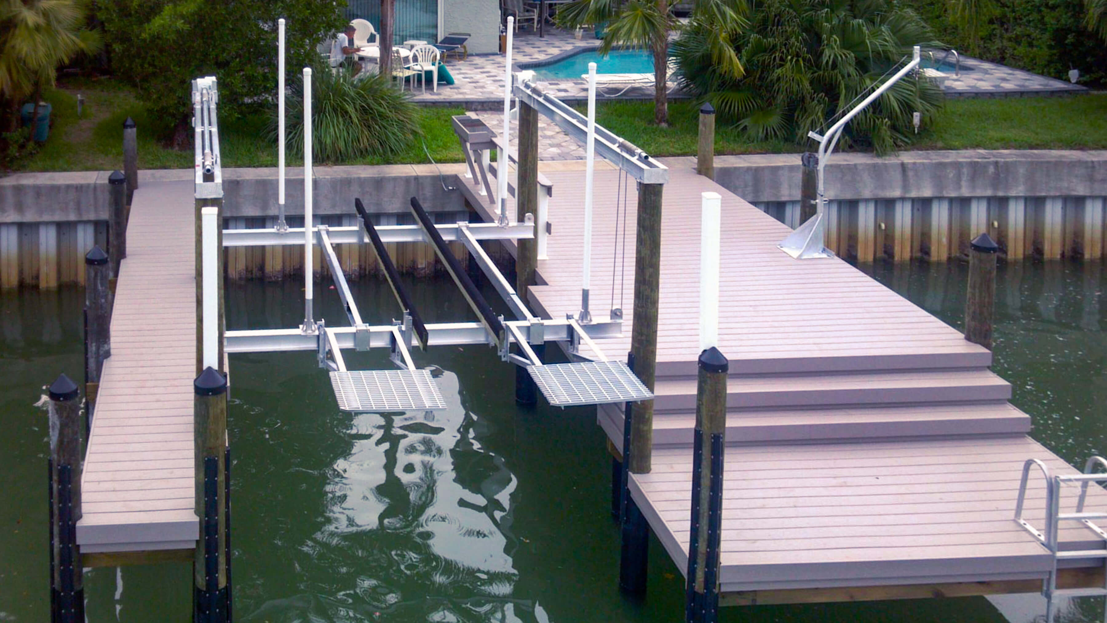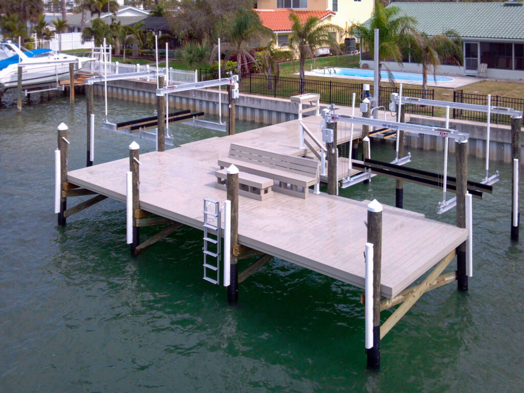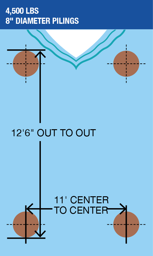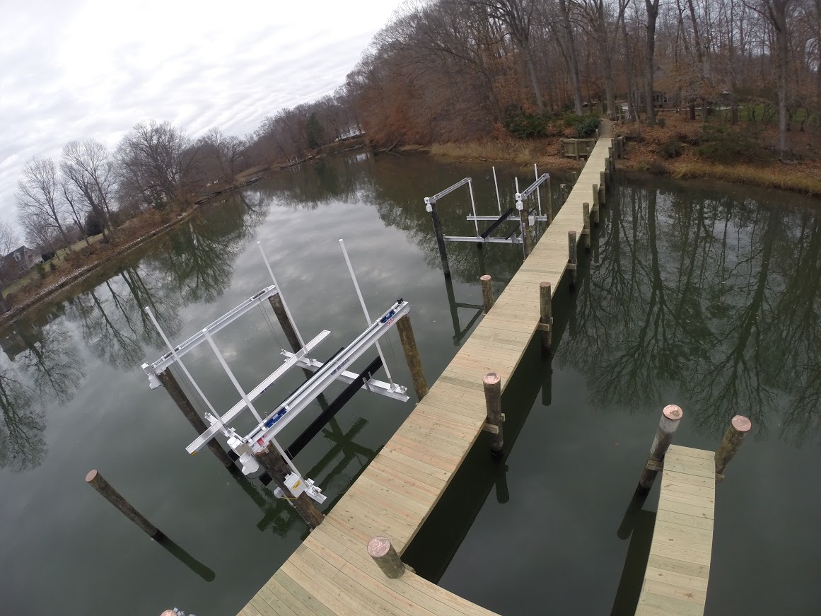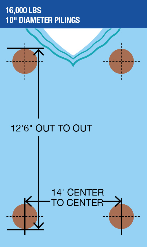 Hi-Tide Cuda Gear lifter beams are designed to lift on the centerline of the support pilings. If the dock edge overlaps centerline of the pilings, adjustment should be made to increase piling spacing side to side, shorten lifter beams, or notch deck boards to accommodate the lifter beams.