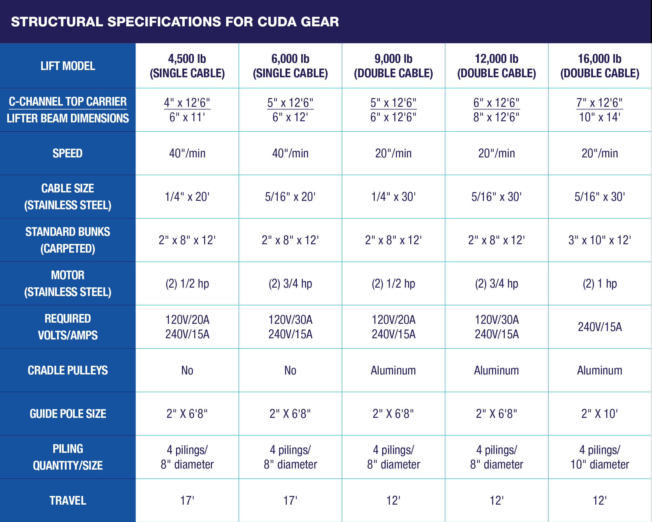 Our most economical lift, the Cuda Gear is powered by our patented Hi-Tide Gear Drive.