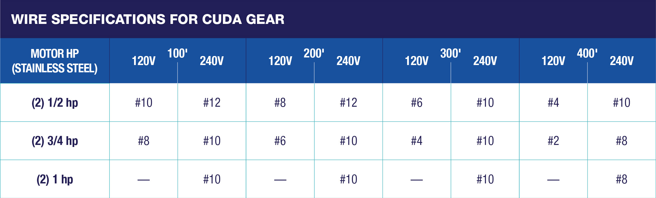 Specifications for Cuda Gear