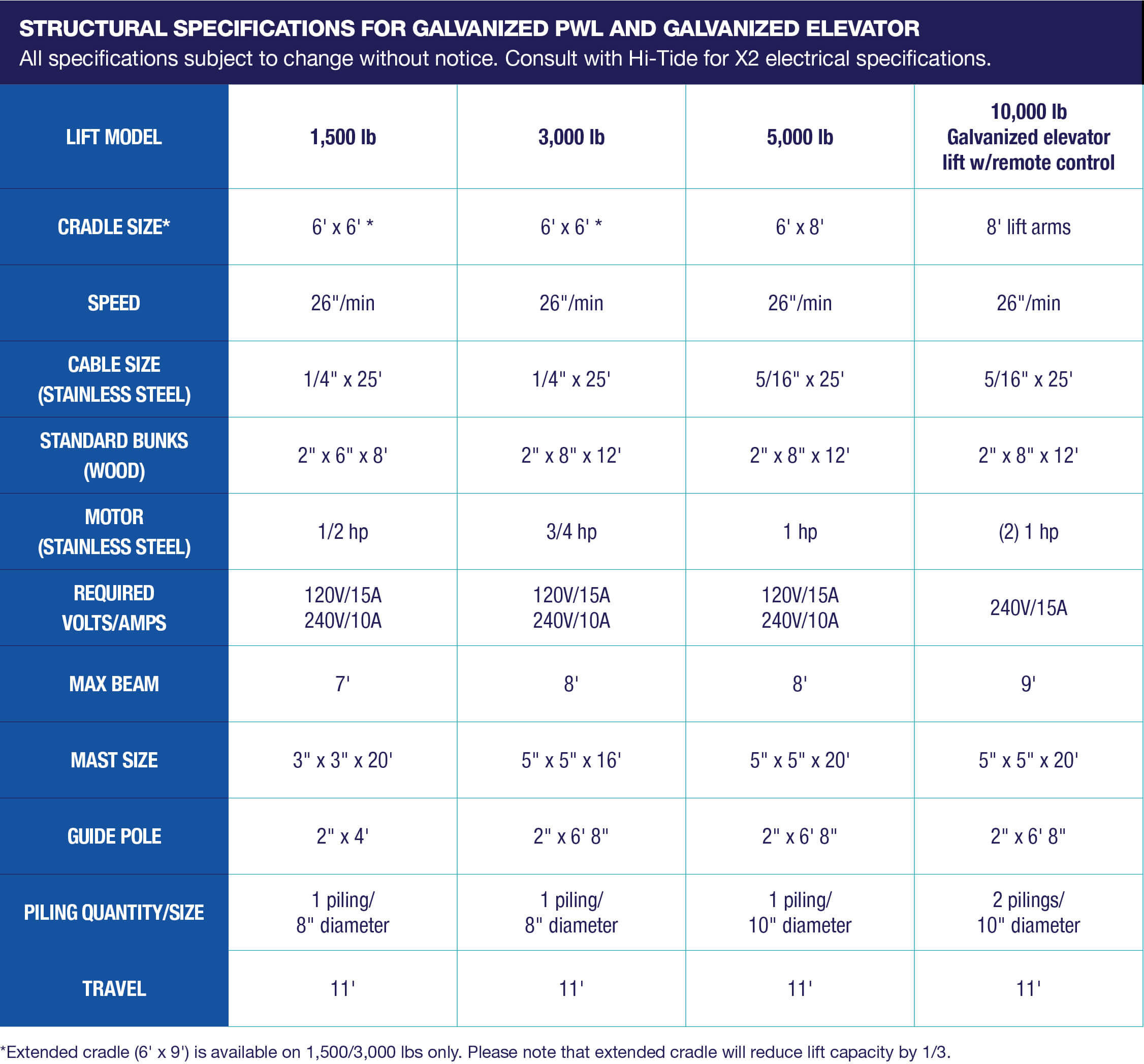 The Galvanized PWL is another option for storing your smaller vessel, using galvanized steel with back-up electrolysis prevention for proven strength and durability and the Hi-Tide Gear Drive system for power and efficiency.