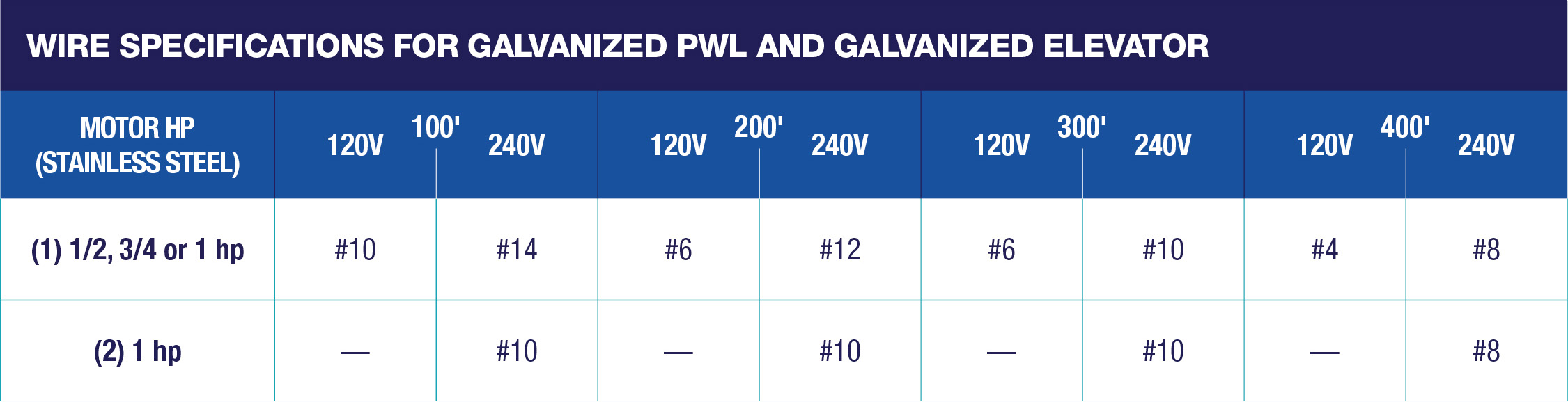 Specifications for Galvanized PWL and Galvanized Elevator