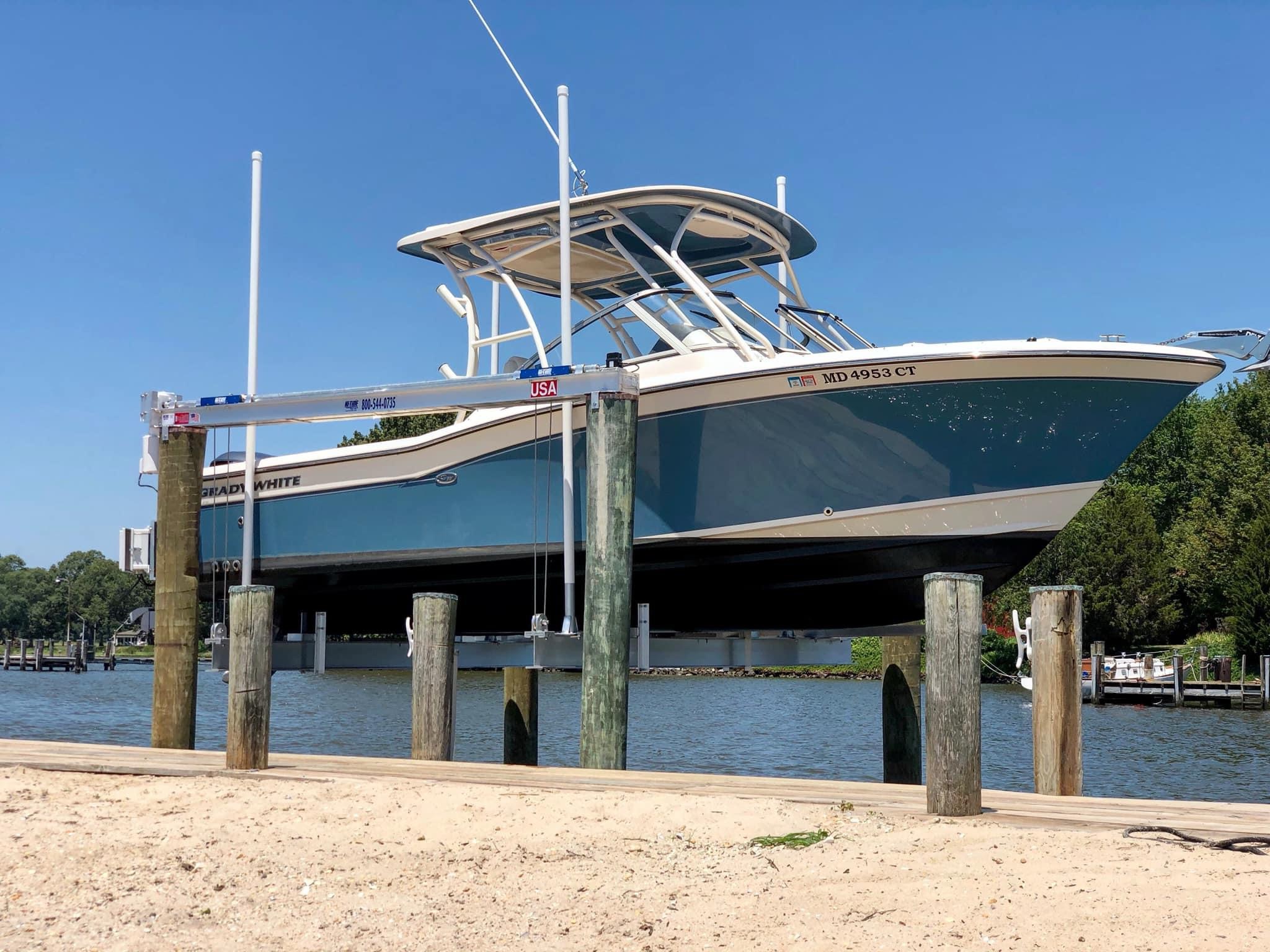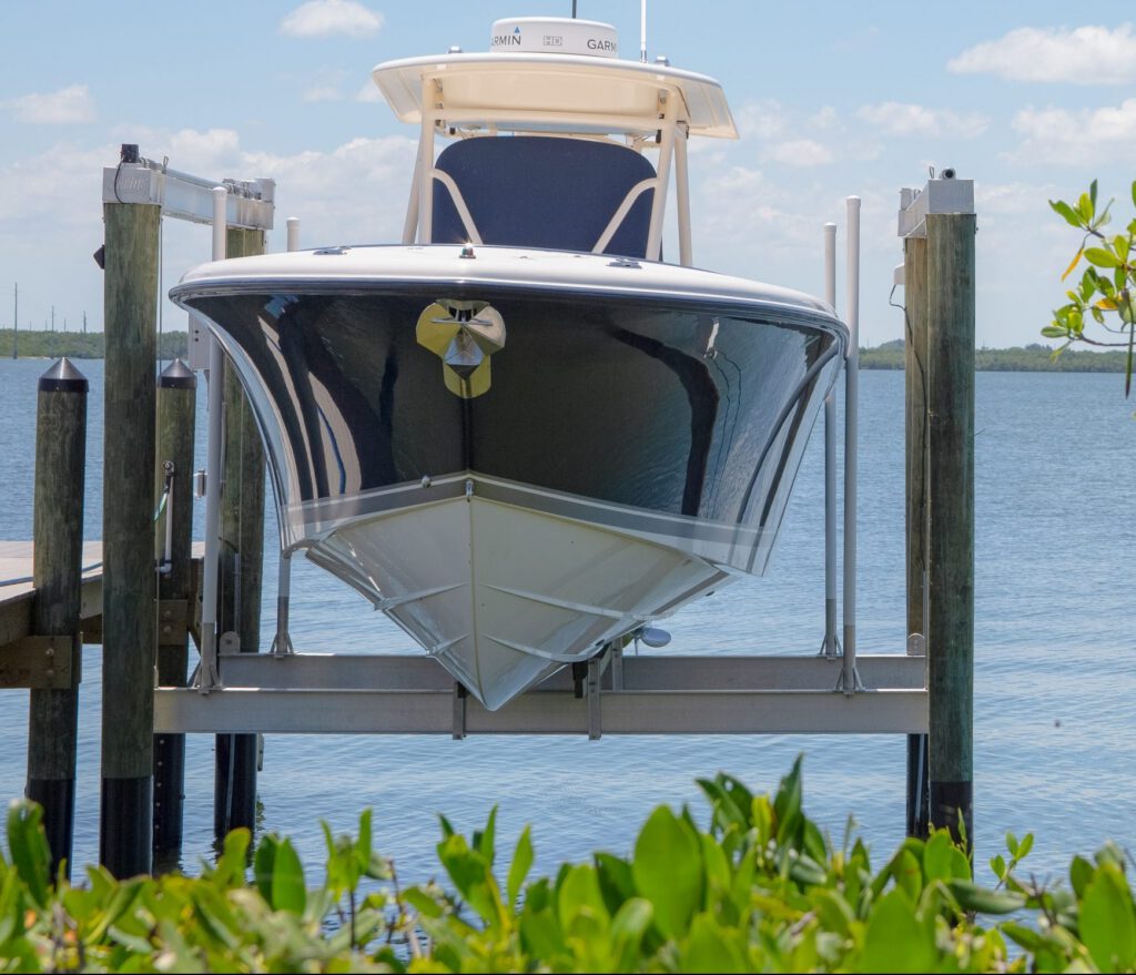 The original Hi-Tide design, the Gear Drive Lift boasts an all-aluminum structure, the longest-lasting metal for the marine environment.
