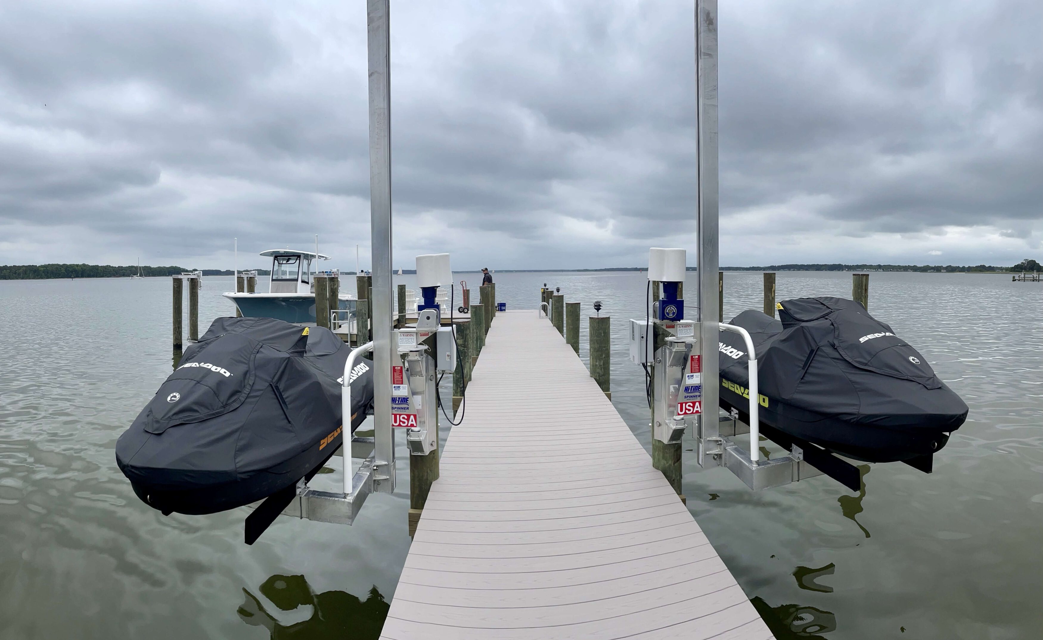 Our Aluminum PWL with a twist, the Spinner X2 is our sassiest PWL with a sleek, space-conscious design. Zip your jet ski up the mast and spin it over the dock for easy loading and servicing!