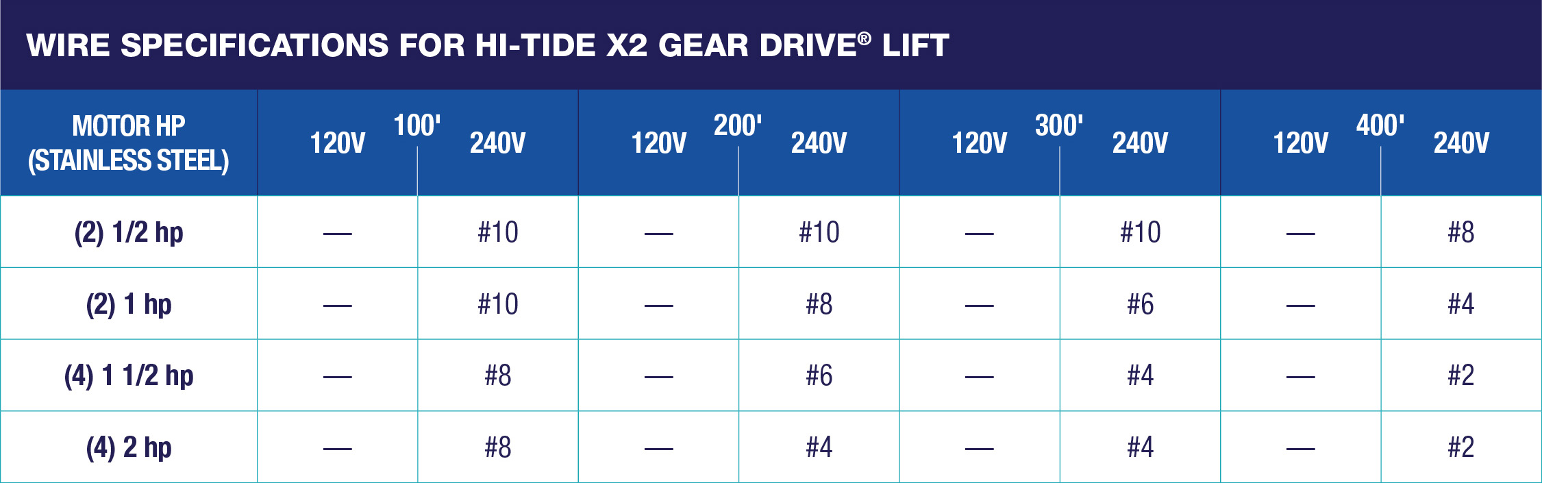 Click below to view the specifications for Hi-Tide X2 Gear Drive Lift, low profile only: