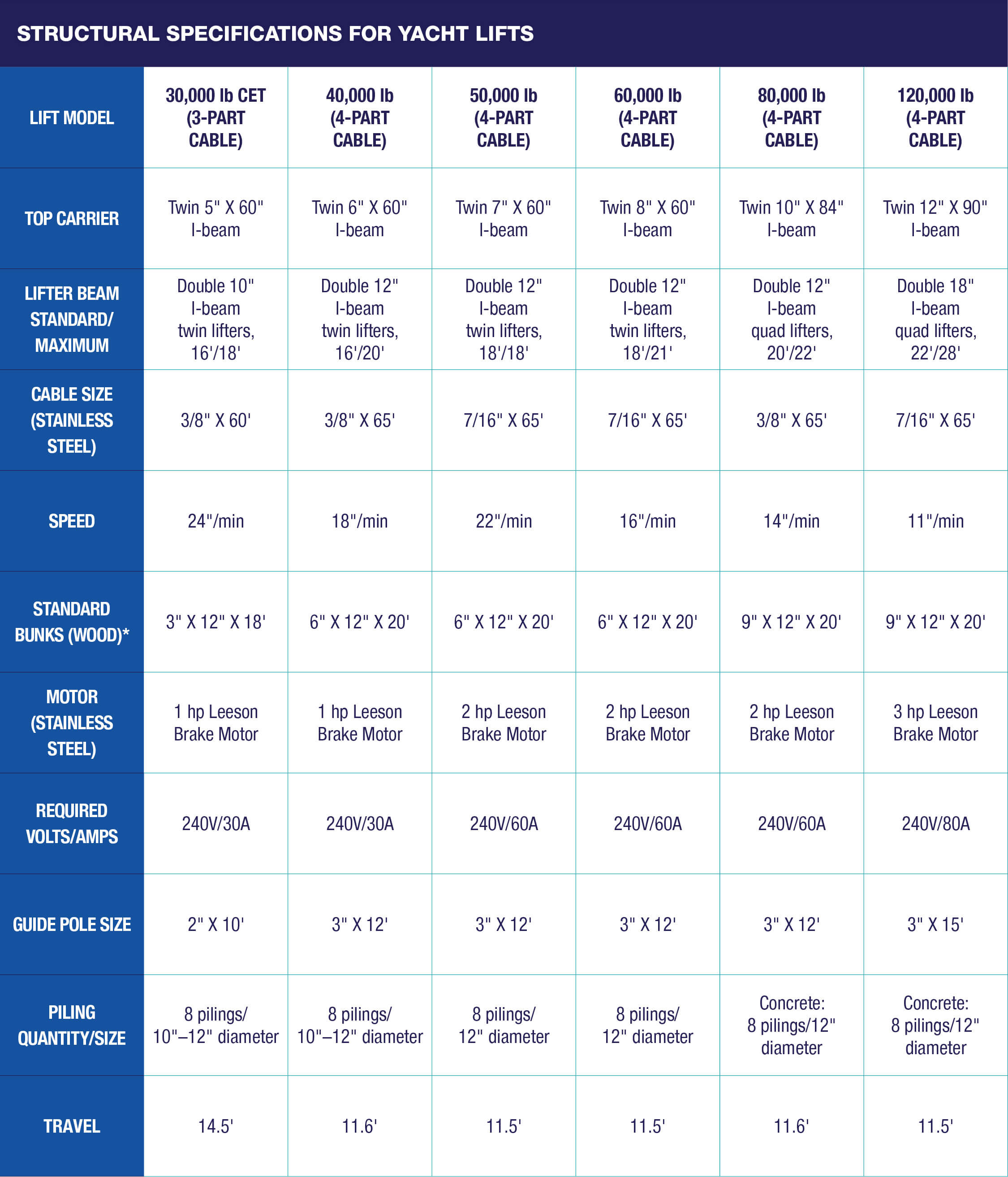 Click below to view the specifications for Hi-Tide Yacht Lifts: