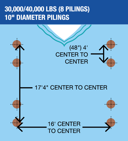 Yacht Lift top carrier beams are designed to fit pilings up to (2) inches larger than specified. Concrete pilings or (4) inch larger pilings require lift customization and must be specified with order.